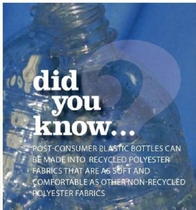 Again, the use of recycled polyester as a green claim distracts from the greater environmental impact that plastics have on the environment, the much greater carbon footprint that any synthetic has compared to any natural fiber, the antimony used in polyester production, the fact that polyesters are dependent on non renewable resources for feedstock…the list goes on.