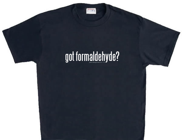 Formaldehyde is another one of those chemicals that just isn’t good for humans.  Long known as the Embalmer’s Friend for its uses in funeral homes and high school biology labs, formaldehyde effects depend upon the intensity and length of the exposure and the sensitivity of the individual to the chemical. The most common means of exposure is by breathing air containing off-gassed formaldehyde fumes, but it is also easily absorbed through the skin.  Increases in temperature (hot days, ironing coated textiles) and increased humidity both increase the release of formaldehyde from coated textiles.